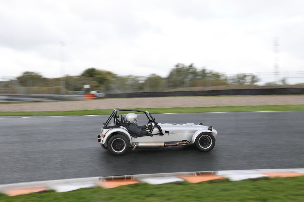 On day 1 the track did dry out mostly.  Turn 1 was marginal all day - I could not get the car to stop and used the run off at the end of the straight quite a few times to save myself.  A combination of damp/wet track, cold temps, the light weight of a Caterham, just could not get the tread on a R888 to grip.