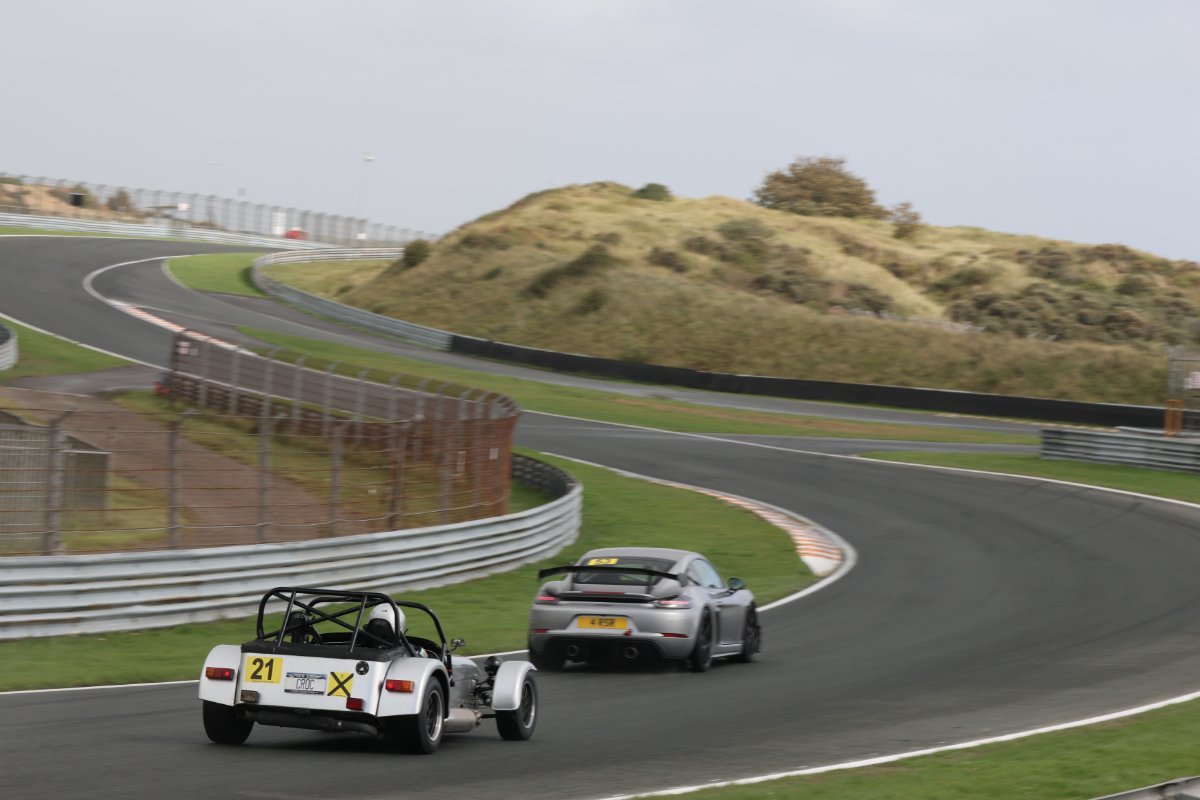 The cars at an RMA event are high end.  A lot of Porsches.  A good scattering of BMW M cars.  There were a few of those space frame Beetle looking Fun Cup things.  There were two other Caterhams - a 620R and a 420 race car.  The 620R was only out there on day 1 as he only had Avon ZZR tires and given the condition sensibly stayed under cover on day 2.  The 420 race car was running full race wets and so was making me insanely jealous by showing off how much grip he had all over the circuit.