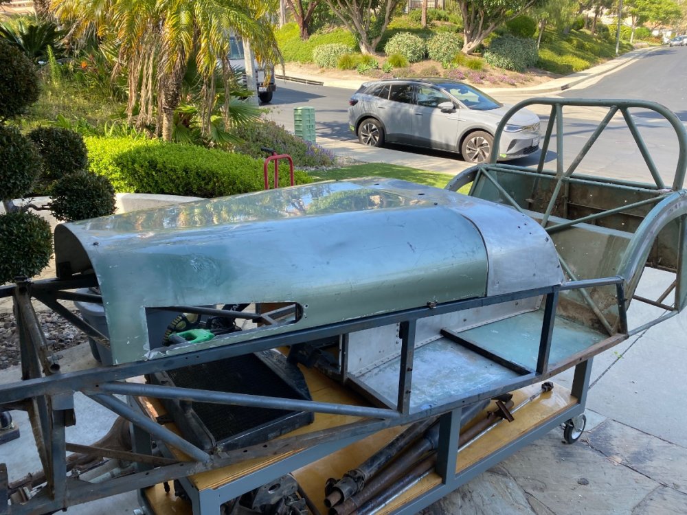 I’ve been going through the parts and trying to figure out what parts I have and what parts I’m missing. Fortunately the former list is considerably longer than the latter! There certainly are some missing items which will have to be found, and some that I have that will need to be replaced. Who are the the best suppliers for S2 7 parts in the US and/or the UK? Is it the same suppliers as for my ‘66 Elan? I’m still formulating the plan for the chassis. There is damage that needs to be repaired and I do want to add some reinforcements, add some triangulation etc. The question is will it be better to send it to Arch (even though they didn’t build it originally) and have them fix everything (some new paneling too), do the work myself or is there a US fabricator that has a track record with these frames? Some of the paneling is in surprisingly decent shape, some is in almost useable condition, and some is just rough! If I send the frame to Arch the solution is simple. The other options are not so straightforward, and it depends on if the finished objective is fully painted, part aluminum and part painted. The hood has some damage that probably prevents it being aluminum. The scuttle I think could be but it will have the scars of 62 years, I’m OK with that! The rear panel is quite straight and damage free, but has been painted. I’m going to try and remove the paint and see how the aluminum looks before making a decision. The side panels are rough and will need to be replaced. There’s lots to think about, plans to be made etc. but that’s all part of the fun isn’t it? Isn’t it?