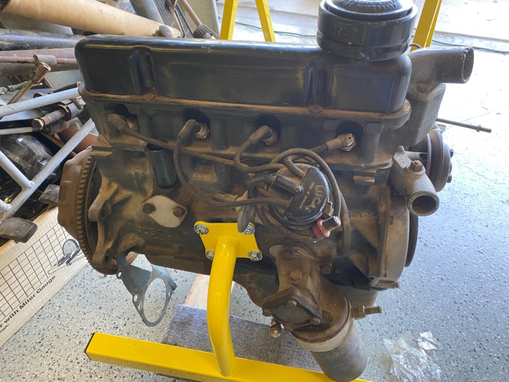 My 1961 Lotus 7 S2 basket case project arrived today! It’s been since early February we’ve been trying to purchase the car and arrange getting it from AZ to me in SoCal! It a Unirads built chassis that was taken apart in ‘69 and stored in an attic in Phoenix. There are 1969 Phoenix newspapers used to pack some parts! There are enough parts to build at least one other car included in the pile of ‘stuff’! I’m not sure what most of the other parts are from, all kinds of different things! Some junk, some look quite decent quality. But I do think that most of the important parts are present, rough as guts in some cases, but somewhere to start. Some parts seem to be in decent shape, some quite original, and some may not make the Final Cut. It does look like this car was raced or auto-crossed at some point as there are signs of ‘performance’ modifications, a very rough roll hoop, some chassis gusseting etc. but most significantly the head has clearly been worked, the ports seem nicely re-shaped, and there are a pair (I think) of Webers. Everything was thrown in the garage a quickly as possible this morning, but I’ll get out in the garage later to start sorting out which parts are 7 and which are from something other than a 7. I’ll take take pictures as I go and post a few here. My goal, at present, is to restore the car to near original but we’ll see if that remains a viable objective as I get into the project. Im sure I’ll have all kinds of questions for the collective wisdom here! Fun times! Ian SoCal