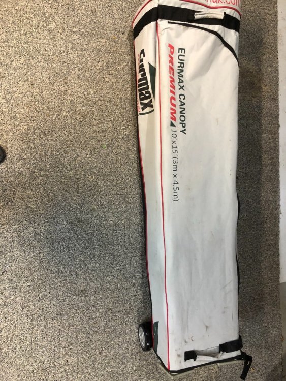 See photos. This is very nice and has been only used a few times. Comes with stakes as well as corner pole weights to hold it in place. Cost $100. Local and nearby delivery only. Or can take to the NJMP event in September?
