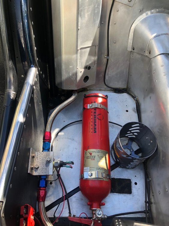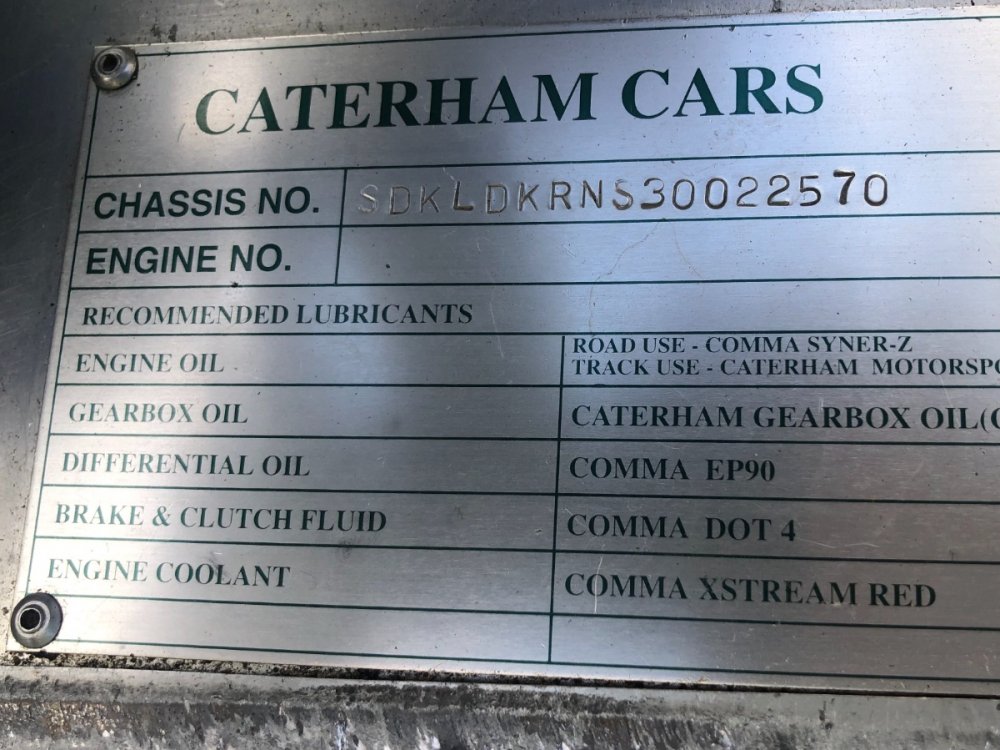 A coupla more pix: Top one shows the “notch” chassis. Caterham wasn’t able to fit this engine without metal snips. Next is the engine bay, followed by a shot of part of the fire suppression system(the extinguisher is plumbed to nozzles in the engine bay and passenger side of the cockpit), then the trailer and finally the ID plate.