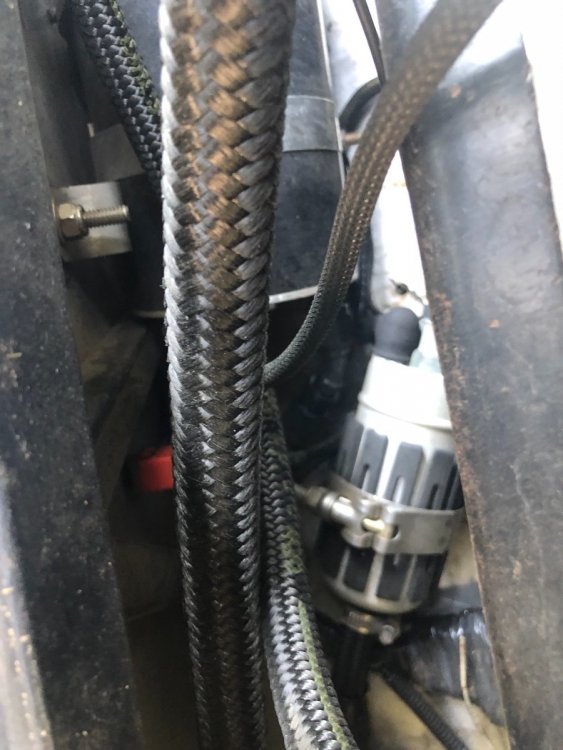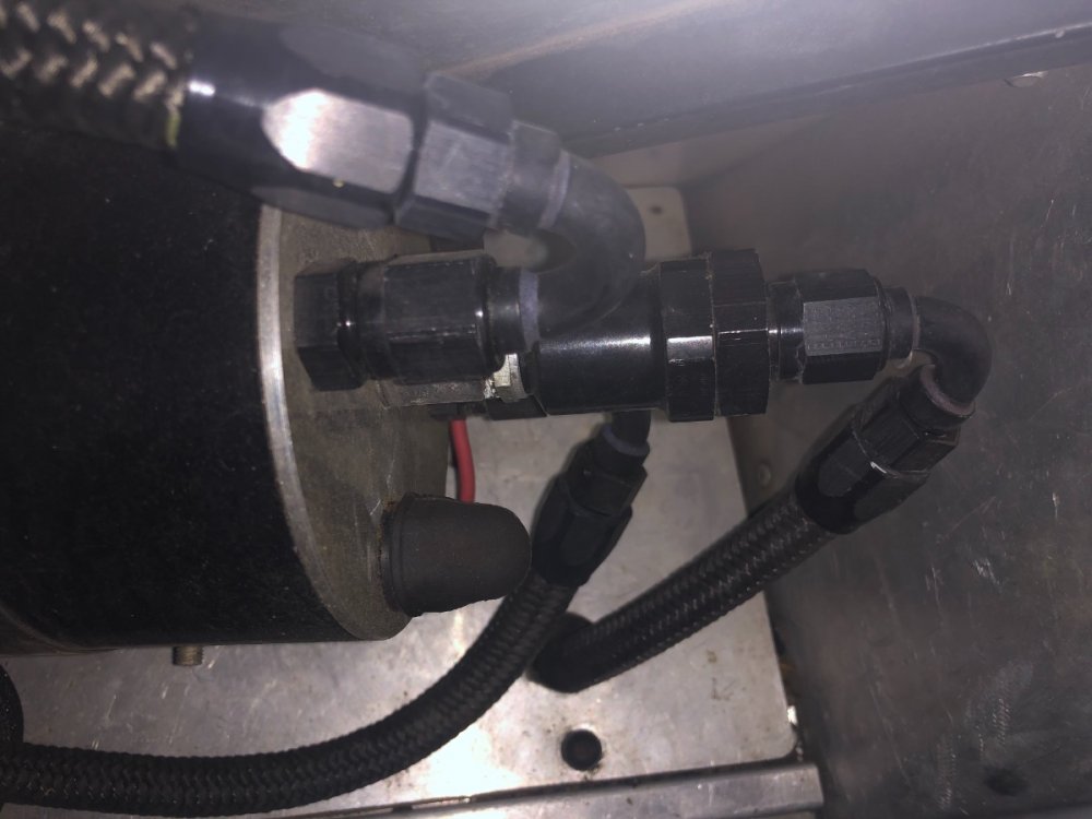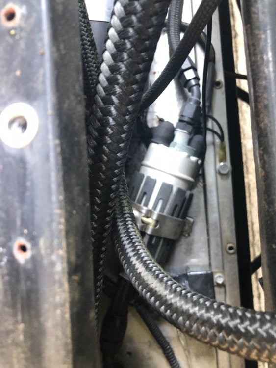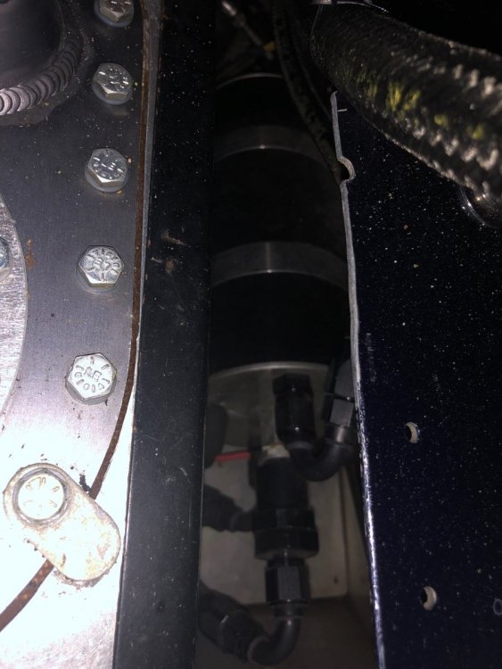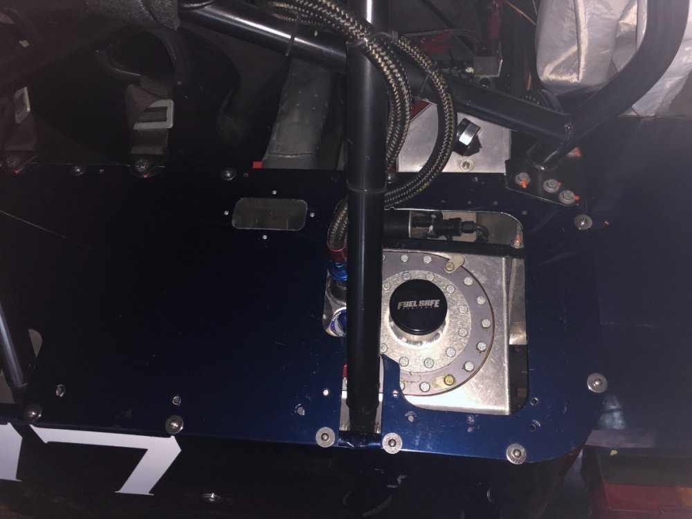 14. Here are a couple of shots of my fuel cell setup. Not sure it helps. It is a return system. All built by my mechanic, I have no info on the details or setup. The fuelline hose that runs up along the rollover bar is the overflow line, not pressured. Tom Carlin runs these thru the hollow bar, which is much more elegant/tidy, on his Birkins. There is a catch can by the drivers’ side rear suspension. The red switch on the rear bulkhead is a separate off/on for the pump.
