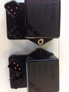 19. Greetings and Happy New Year! I'm still putting things back together after my engine fire back in April. My wiper control box was rendered inop, so i got a new one from an eBay seller in the UK. on the left below is a big picture of the old one. to the right is a comparison shot, with the old one on the right and the new one on the left . . . see the difference? even though the printing on the box ("Lucas 6DA Wiper Control") is identical, the male and female pins are in different places . . . this is a problem, because my new wiring harness will not attach to the new one (obviously). does anyone have a spare?? thanks to all, alan in los angeles
