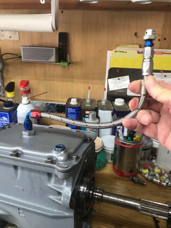 That’s exactly what it is. There is another in the opposite corner. If you choose to weld in a bung when it is removed, consider doing so in the right front corner (looking forward). That will allow you to fabricate and use a dipstick to check lube level. It should also be pretty close to being accessible from above. As you can see in the accompanying photo, I also added a remote vent. If you do this with the transmission installed, be very careful to NOT move the shift lever while the top cover is removed. There is a sheet metal structure attached to the inside of the cover that serves as the guide for the selector shaft and if moved, you can easily lose the internals of the 1-2 synchronizer. Don’t ask me how I found out! According to Chris at BGH Geartech in England, 1.25 liters is about right. Ford recommended 1.6 l for a while but that often produced seepage at the rear seal over time. In the second photo, you can see that the fill plug is lower on the boss in my transmission. Earlier case. The later ones that were set up for 1.6 l have the fill plug located higher on this boss. I’ve never had a problem at 1.25l. The rounded protrusion on the bottom of the case holds a magnetic disk. You will never know if there is anything on it until you completely disassemble the gearbox. Gotta love some of these engineers.