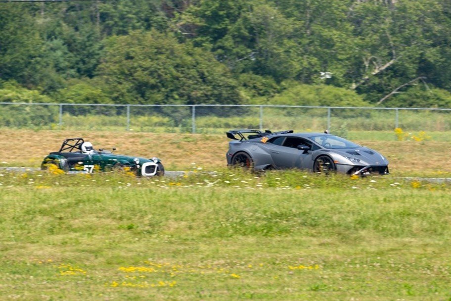 Inspired by the recent Barber track day post by @UglyFast I thought I would bump this thread with some photos from a track day weekend at Canaan, NH back in August. This was my first time running in the advanced group and I was a little nervous at first. Highlights of the weekend were getting a point-by from a hot rod Lambo, only having to give one point-by over the two days (a Z06 C8), and my youngest daughter having so much fun doing a ride-along at Canaan that she just did her first track day at LRP in our Exocet. To be fair to the Lambo, Canaan is a low top speed track perfect for Seven's, but it was really cool to chase it down and hear that exotic exhaust up close and personal. Sorry for adding the photo of my daughter drving the Exocet, but I was a pretty proud dad with how well she did at LRP! -