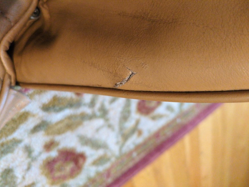 15. The only flaw is a small cut on the lower inside edge of one seat. Approx. 1/2 inch