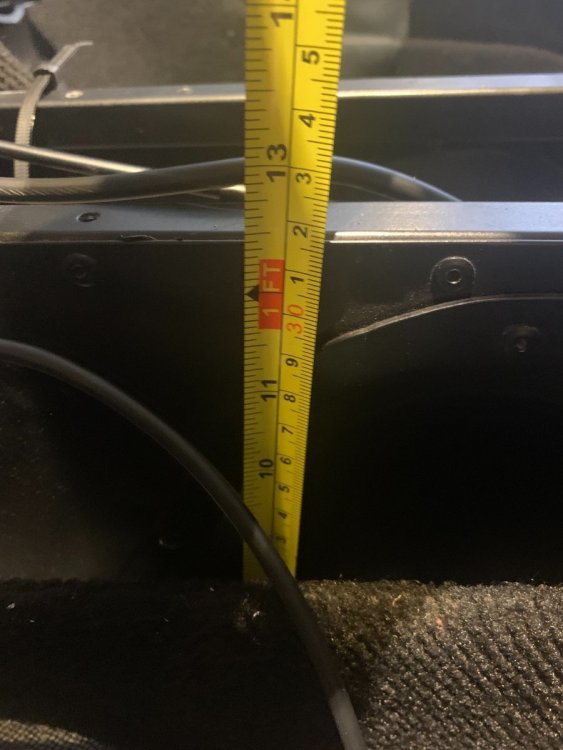 317mm from the top to the lowered floor. Note that it’s not straight down, there is a ridge at the lowered floor section at least for mine. -