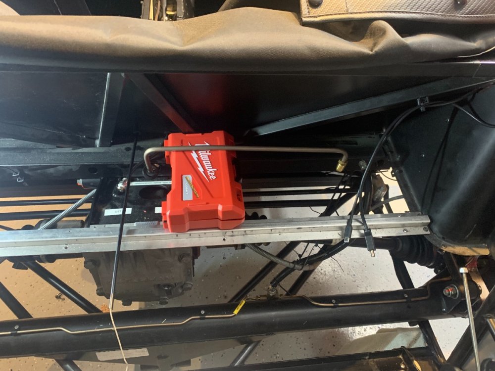 The new ECU is in, started the plumbing, starting at the engine and going back. 5/16” fuel line quick connect connector, 6AN hose clamp, 7.9mm stainless braided high temp fuel hose… Although the internet said to use hose clamps not cable ties for fuel lines I used the latter like the original installation, seems fine to use for the tunnel… For the exit point from the tunnel above the LSD I didn’t feel comfortable snaking around the hose like the old one because it’s quite a bit larger diameter and didn’t want to risk pinching it, so I cut a notch in the wood above the LSD to use as an exit point. It’s cut to the right a little to make room for the fire extinguisher on the left…