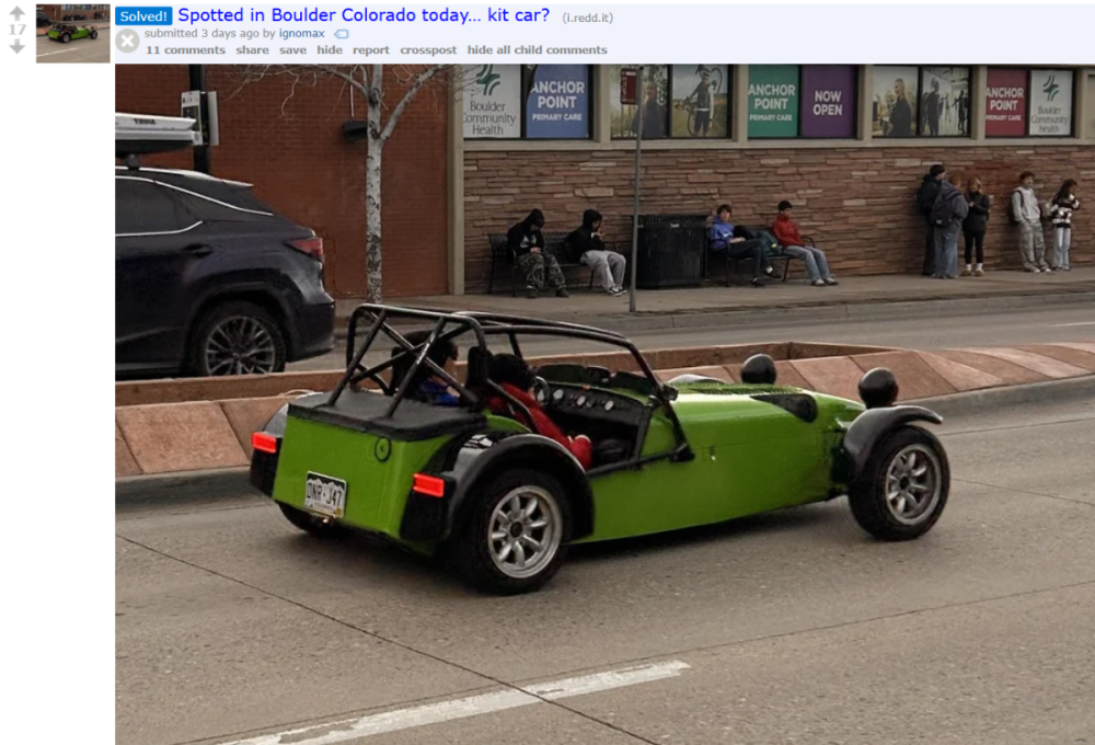'' https://old.reddit.com/r/whatisthiscar/comments/1qf7cdc/spotted_in_boulder_colorado_today_kit_car/