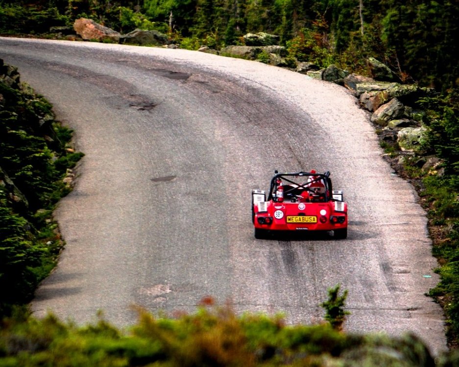 Too kind. I studied a lot of video, maps and even Rally course notes. When you get on the road as a first timer, you are totally reacting to what you see. The elevation is far steeper and the drop offs are far greater. I hit over a hundred three times but it sure looks slow. About 3/4s of the way up the terrain turns alien... no trees and rocks with green moss. At that point, the road to the right drops off... it may be 1 foot out foot 1 foot down grade.. or it may be a sheer drop off. So you avoid the 1 foot tall jagged rocks planted on the edge and stay to the left of the road conservatively. There you find a deep gully from rain water eroding away the asphalt. In one spot I drove over a 2 foot sink hole where asphalt gave way and I hit the other side so hard, I had to see a dentist when I got home. It was a wonderful memory but half way I made a deal with the Lord. Get me off this mountain in one piece and will skip my plans for Pike's Peak next year. I kept my bargain. I will say if you run Mt. Washington, you will find it has more turns per mile and more elevation per mile than Pike's Peak. Comparing the two hillclimbs, Mt. Washington has rough abrasive surface and a mile of dirt while Pikes Peak is now a days a cherry smooth asphalt race track with zero runoff room. Elliot Forbes Robinson told me at a dinner I attended that "if you go off at Pikes Peak you don't have to worry about keeping your car updated with new technology .. by the time it hits ground, it will be old technology." LOL I greatly enjoy hillclimbing.... grew up going to Chimney Rock and ran Southeastern Hillclimbs, Founded the Chasing the Dragon Hillclimb and ran all the PHA hillclimbs with 4 class records and 2 Class Championships in the Westfield. Once sorted, the Megabusa is wicked fast and a load of fun ... as long as you work up to your fastest times. If you are interested in Hillclimbing, you might enjoy my website of memories of the old Chimney Rock Hillclimb here : http://thesoutherndriver.com/the-chimney-rock-hillclimb-archives/ -
