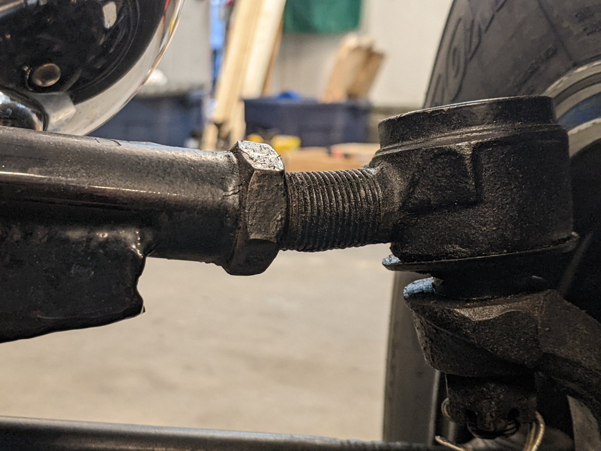 7. McMaster-Carr carries coupling nuts in 3/4"-16; though also not cheap. The real answer here is longer rocker arms to reduce the number of exposed threads. I'd like to give the factory the benefit of the doubt by saying the exposed shaft is intended to make the balljoint sacrificial in a shunt, but that seems optimistic for an early 80s application.