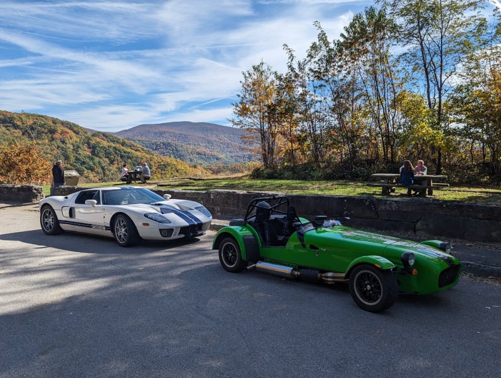 Just finished a fantastic road trip with a friend and his "old" GT40, as opposed to his new one, which he kept in the garage (lucky guy!). Hit Tail of the Dragon, Cherohala Skyway, and lots of surrounding roads. Randomly met an older gentlemen who was an engineer on the LeMans winning GT40 teams. He and his wife had lots of interesting stories. What a trip!