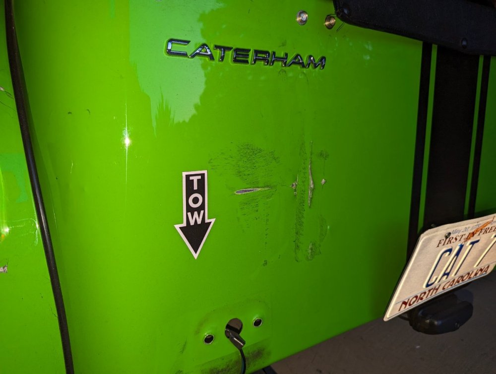 My rear panel had an unfortunate incident with a driver on the phone. Luckily, the damage is minor and cosmetic only (I was going 5 mph, and he was going 10 mph). See below. The black markings have come off, so I am dealing with exposed aluminum and a few small dents. Multiple repair shops have said that the best bet is to replace the entire rear panel. The panel itself is cheap from Caterham, but it would need to be painted. Has anyone replaced their rear panel? How much work is involved? This car is driven, not a show car, so I may leave it as-is if the work is too cumbersome or expensive.