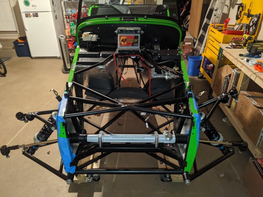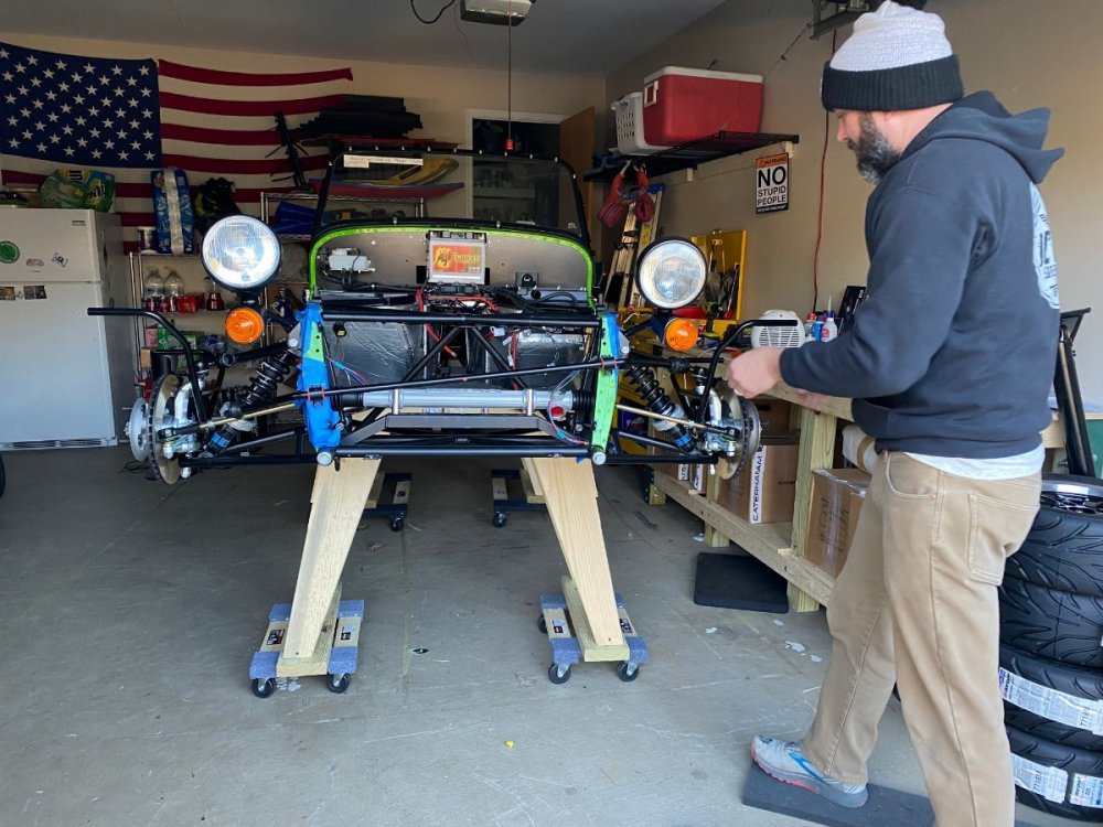 After a long wait ($&#! COVID and supply chain issues), I now have my 310R SV kit as of Thursday. Thanks to Josh with Rocky Mountain Caterham for his great help so far. I have limited mechanical skills, so this build may be a good push for those on the fence to assemble their own (assuming all goes relatively well). I have made good progress so far between kids' basketball games and piano recitals. Built a unique looking stand per the advice of Josh's father (Ross Robbins, thank you), wishbones (upper wishbone washers were as frustrating as advertised), dampers, and steering rack are in. Next up are wingstays, front brakes, and front lights. Hope to accomplish all of those this week before a 1 week break for Radford driving school in Arizona with friends/clients! I look forward to any advice, critical eyes, and help you can offer.