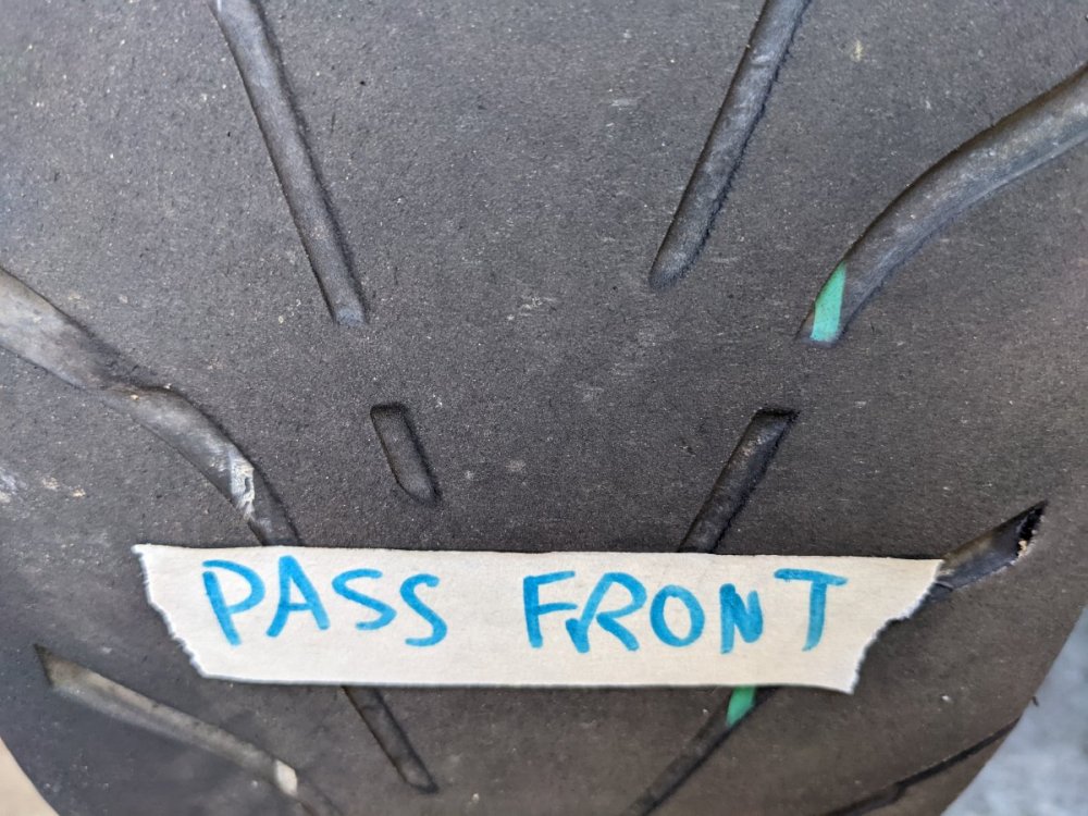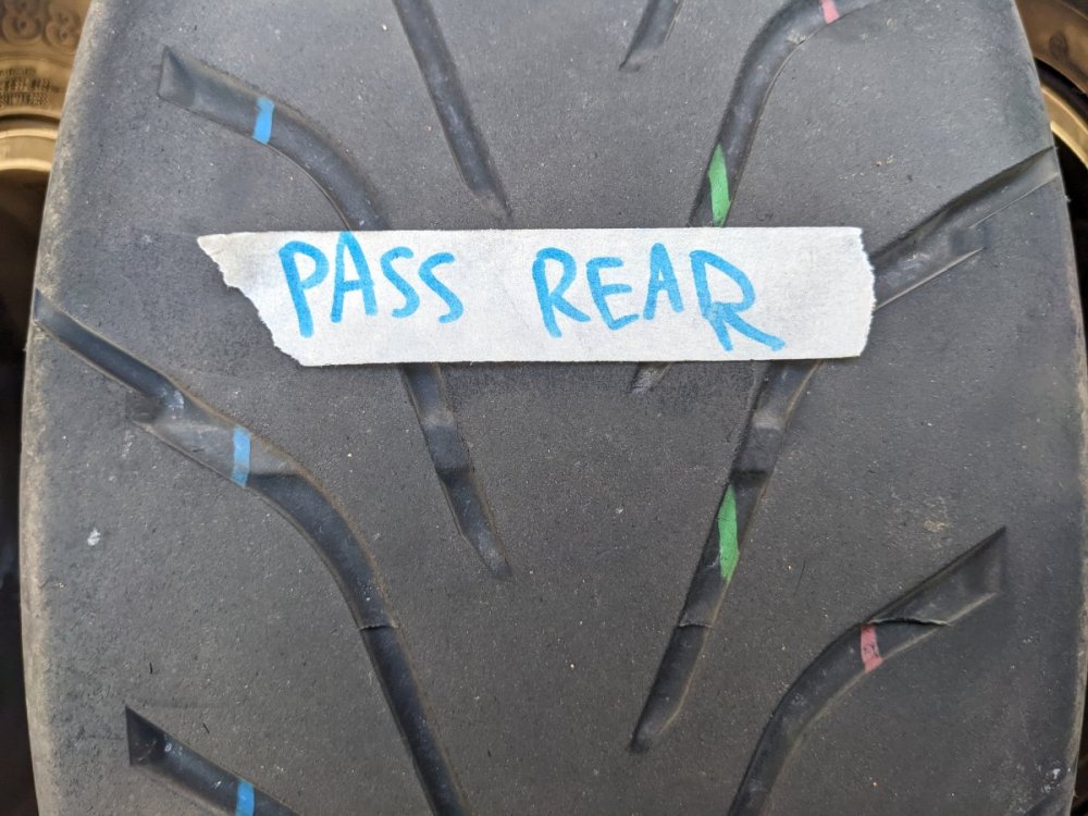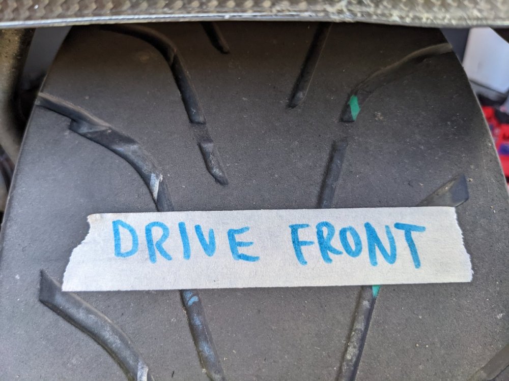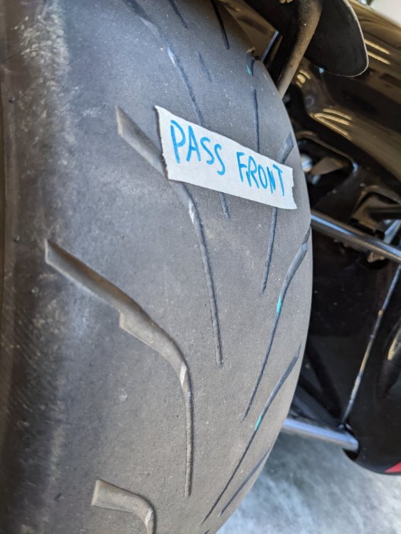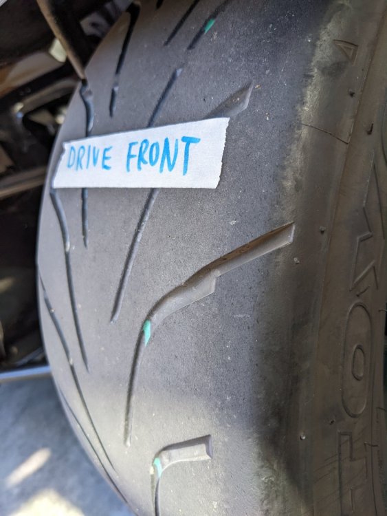 Swapped to a new set of R888R, took some pictures of the fronts (heavily worn down past the wear bars but fairly uniform) and the rears (again uniform but not as heavily worn). I don't know if it's understeer or normal steering wheels getting worn due to usage, happy to hear any thought on setup changes others might advise based on pictures. All pictures taken as if from the front of the car I probably could have gone with new fronts and kept the rears for a bit longer but they were older date code tires and for safety I chose to replace all four.