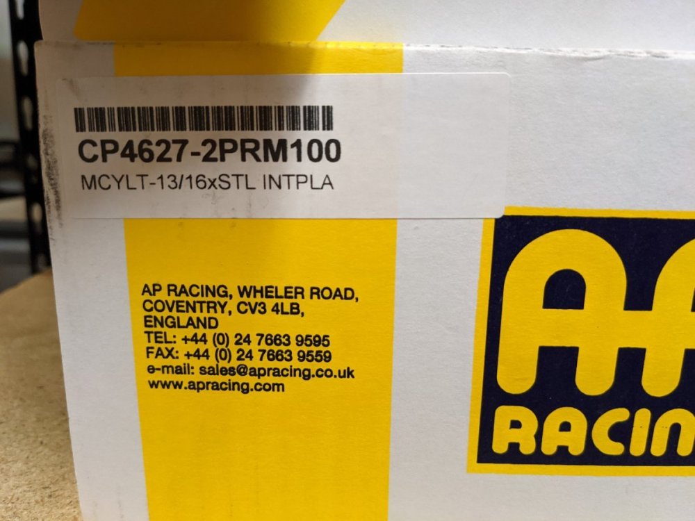 As a follow up note if you are planning to replace rather than rebuild, the 0.7" bore Girling 74660152/TRW cylinders are a drop in replacement for the 0.8" bore AP Racing CP4627-2PRM100 MCYLT-13/16xSTL INTPLA / CC uprated master cylinder. -