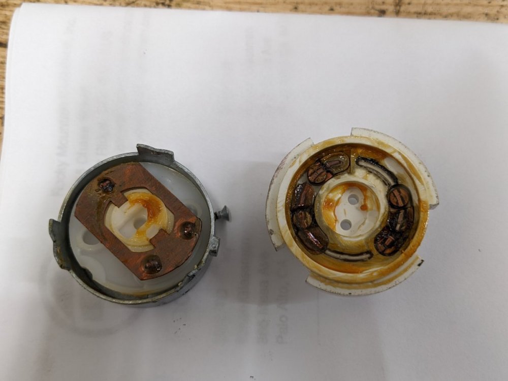 Thanks Croc. I have been concerned by a wiring choice made somewhere along the line where effectively the 12v line to all of the switches was hot even before the key was inserted (allowing me to turn on lights, even spin the starter with the push button etc. without the key) so I was starting by correcting that and I am beginning to suspect it was made as a consequence of a dodgy ignition switch. I pulled a spare keyed switch, fabricated up a column mount, and wired it up in place of the Caterham part. The Caterham part looks like it is a Lowe and Fletcher 2201 locking cylinder attached to a Lucas 157SA switch, the one I had on hand has some very nice threaded connector lugs instead of the male spade connectors on the Lucas part. Testing to come but initial reactions are that it behaves exactly as a switch ought to, fuel pump primes, the headlights/turn signals/starter motor all run (only when the key is turned) etc.