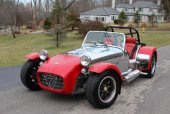 2. This 1991 Caterham Super Seven is a right-hand drive example that was reportedly first built in the UK. It was later imported to Ohio in 2019. The exterior is finished in red and polished aluminum over a red vinyl interior, and power from a 1.7-liter Ford inline-four paired with a five-speed manual transmission. Equipment includes a De Dion rear suspension, Caterham roll bar, Caterham harnesses,adjustable dampers and electronic ignition. This Caterham is offered on behalf of the owner with a clean Ohio title in the owner's name. 13" black Minilite-style alloy wheels with Caterham center caps are mounted along with a spare and parts for rear mounting. Instrumentation includes a 150-mph VDO speedometer, an 8k-rpm tachometer and stack gauges for fuel level, water temperature and oil pressure. The five-digit odometer shows just over 18k miles, approximately 1,300 of which were added by the current owner. When current owner bought the car it was noted that: "The Ford Kent crossflow engine was rebuilt in 2013 by Vulcan Engineering in Kent, England. The block was bored to 1,700cc, the cylinder head was gas-flowed, and Wossner forged pistons, PEC forged connecting rods, an AP Racing clutch, an electronic ignition, and twin Weber DCOE carburetors were installed. The gearbox was reportedly rebuilt in 2014 and is said to feature an aluminum case. A tune-up was performed in 2019." Receipts from the 2013/2014 refresh and engine rebuild, passed UK MOT certificates, owner's manuals and handwritten service documentation are included in the sale. Side screens and a Soft Bits for Sevens half hood shown below fit in the trunk and come with the car. Purchased by current owner on BaT in Feb. 2020. Cincinnati, OH $30,000 Just got her back from oil change and clean up.