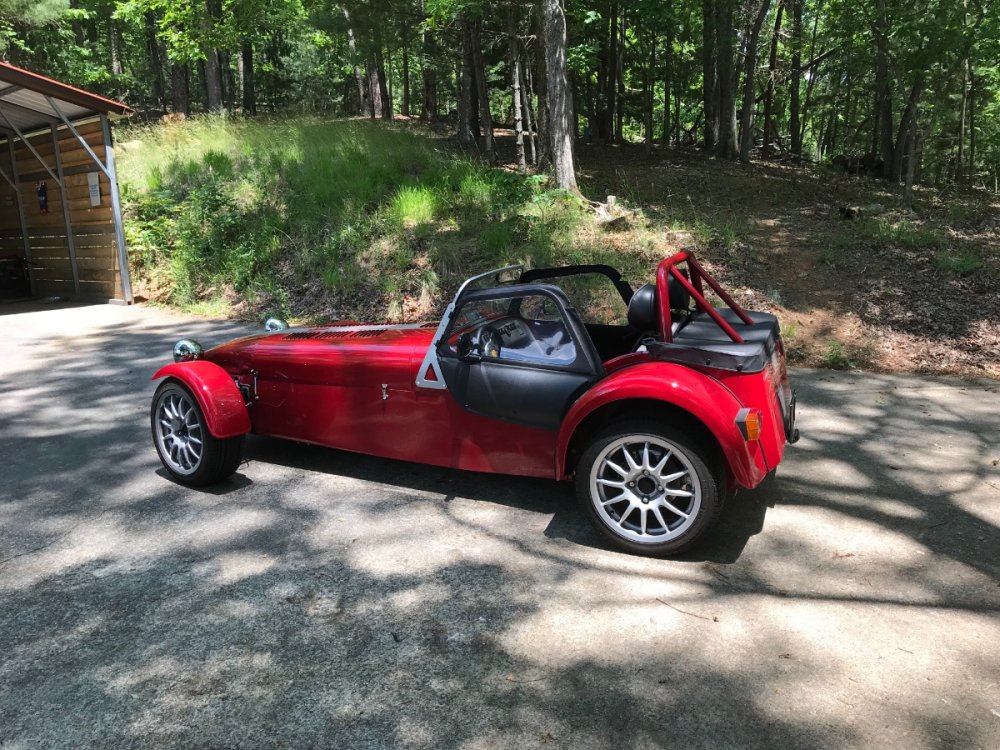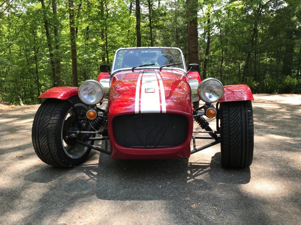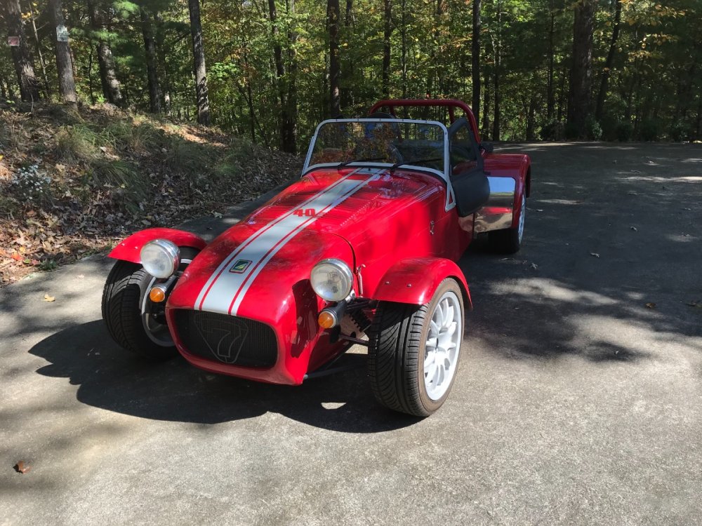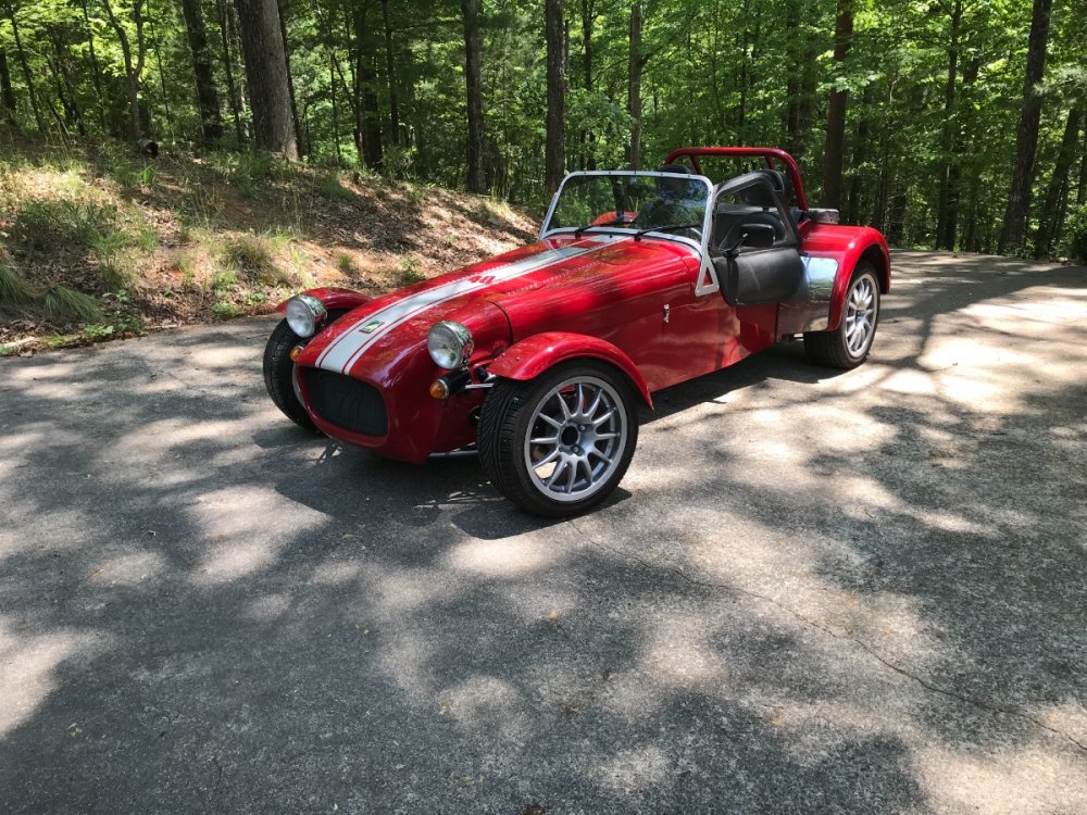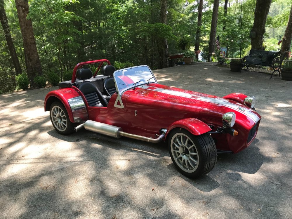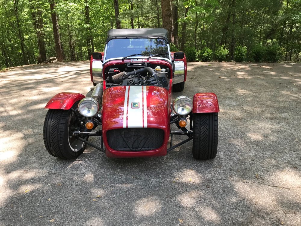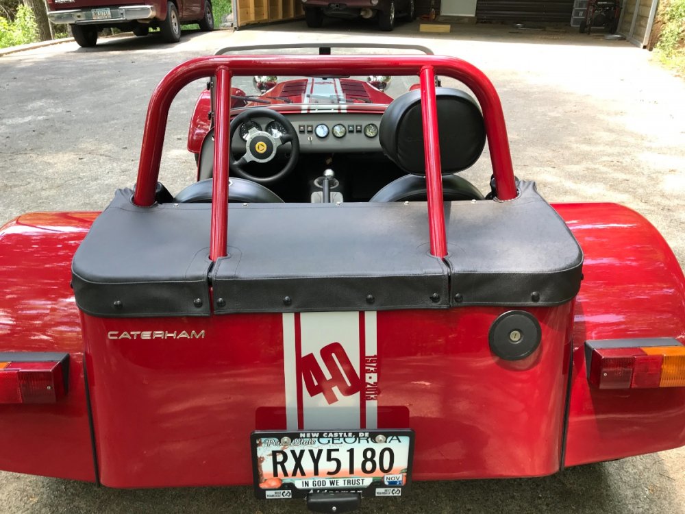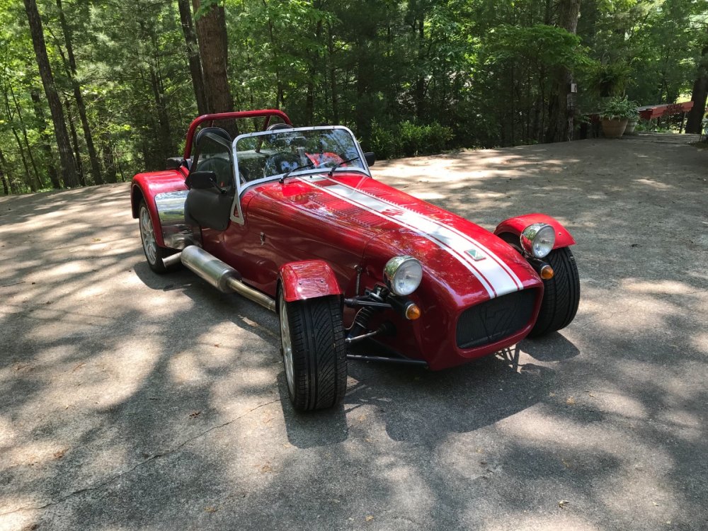 This Ruby Red, 2013 Caterham Super 7, 40th Anniversary Edition being just 1 of 40 produced in this eye catching color is for sale. A Centered Silver stripe on the bonnet shows of the cars clean lines. This particular “7” being number 22 of the original 40 produced. I acquired the car in October 2020 and have only added 410 miles to the original 284 on the car when purchased. This amazing car has only 694 miles on it. Car has always been adult owned, I’m the second owner, and garage kept and it shows. Power is put out with a factory spec 1.6L Ford Sigma equipped with custom cams through the 5 speed transmission and out to the LSD equipped DeDion rear with a custom adjustable rear anti sway bar. Coil springs front and rear along with 9” disc brakes all the way around round out this cars mechanical. Interior wise a full spread of gauges and lighted switches augment the leather dashboard with it’s intact limited edition factory badging, fully carpeted interior while the black with grey trim interior compliments the hand stitched black leather seats with grey piping. This car has a heated windscreen, multi speed wipers, full weather gear and a new uninstalled tonneau cover. This amazing car also comes with a passive anti theft device, battery tender and an extra set of 5 brand new 14” wheels with new Avon tires. With the car weighing in at just under 1,200 lbs. it’s like driving a go kart for adults. Car has a clean Georgia title. Asking $43,000.