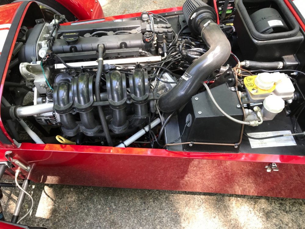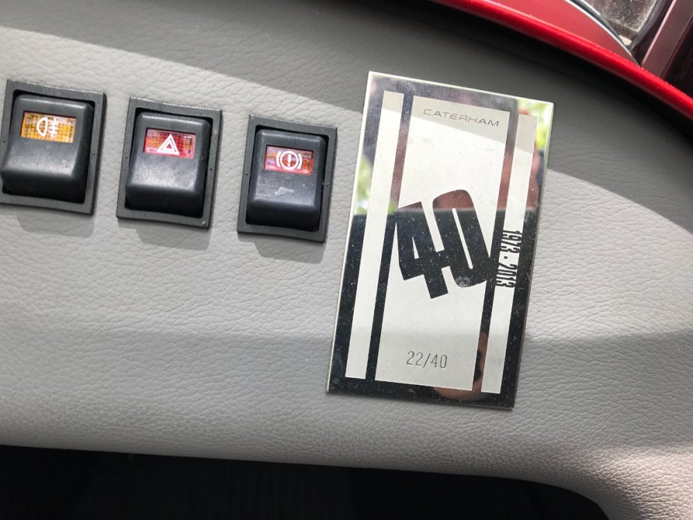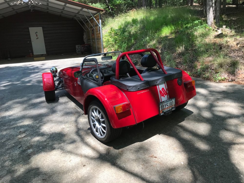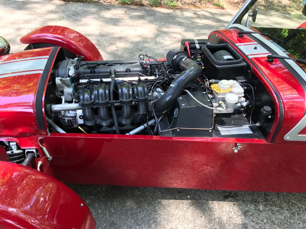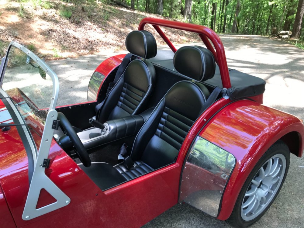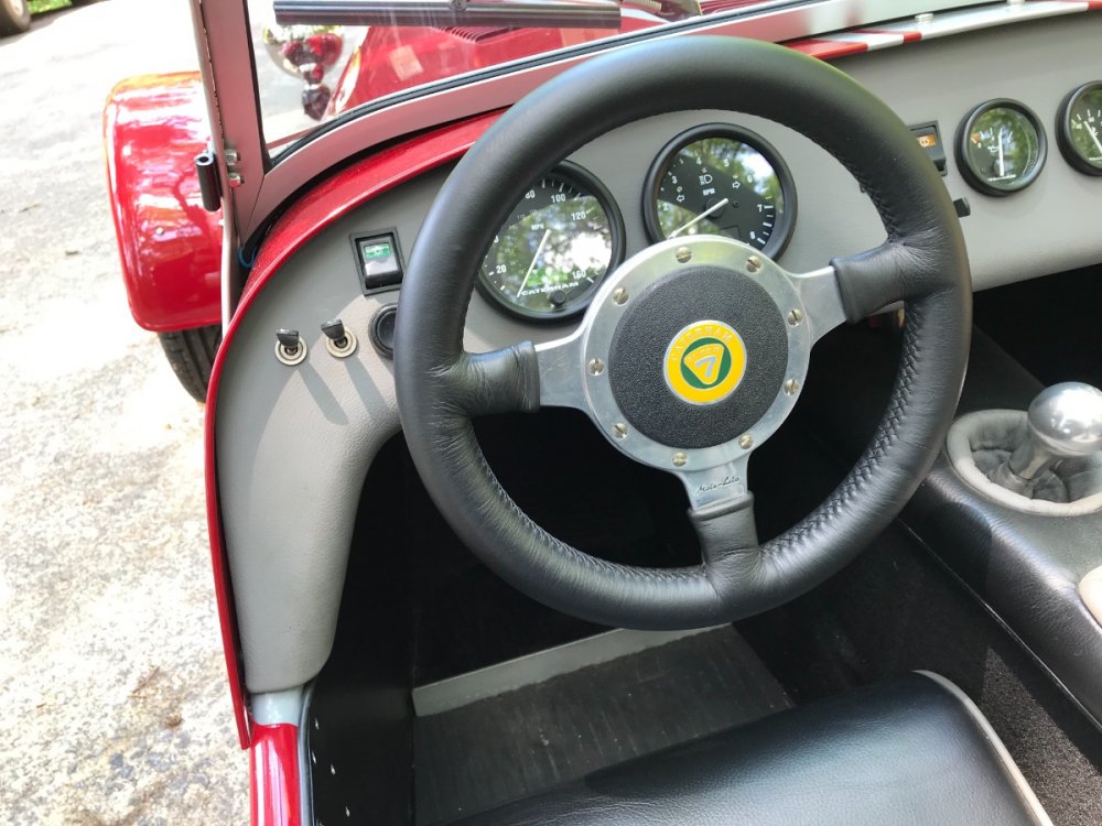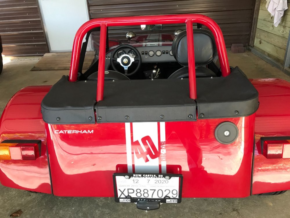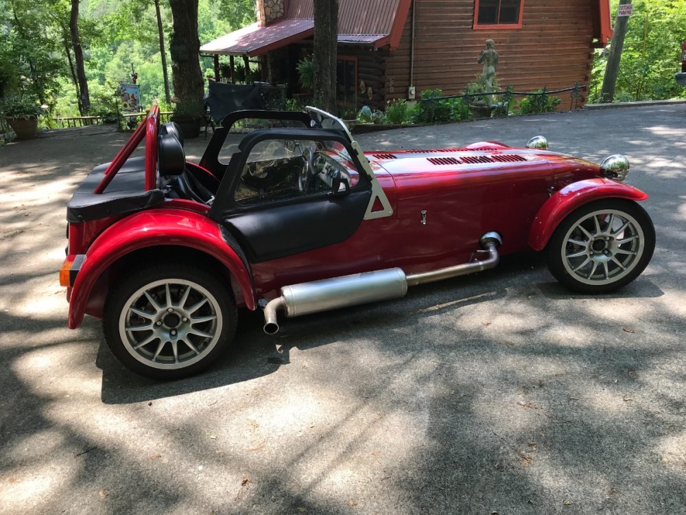 This Ruby Red, 2013 Caterham Super 7, 40th Anniversary Edition being just 1 of 40 produced in this eye catching color is for sale. A Centered Silver stripe on the bonnet shows of the cars clean lines. This particular “7” being number 22 of the original 40 produced. I acquired the car in October 2020 and have only added 410 miles to the original 284 on the car when purchased. This amazing car has only 694 miles on it. Car has always been adult owned, I’m the second owner, and garage kept and it shows. Power is put out with a factory spec 1.6L Ford Sigma equipped with custom cams through the 5 speed transmission and out to the LSD equipped DeDion rear with a custom adjustable rear anti sway bar. Coil springs front and rear along with 9” disc brakes all the way around round out this cars mechanical. Interior wise a full spread of gauges and lighted switches augment the leather dashboard with it’s intact limited edition factory badging, fully carpeted interior while the black with grey trim interior compliments the hand stitched black leather seats with grey piping. This car has a heated windscreen, multi speed wipers, full weather gear and a new uninstalled tonneau cover. This amazing car also comes with a passive anti theft device, battery tender and an extra set of 5 brand new 14” wheels with new Avon tires. With the car weighing in at just under 1,200 lbs. it’s like driving a go kart for adults. Car has a clean Georgia title. Asking $43,000.