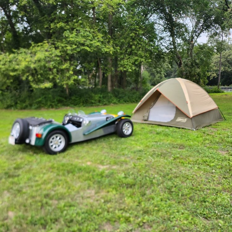 Oh, and camping with a 7! Spent the weekend at Blackhawk Farms Raceway during their annual AHRMA event. Used to race with AHRMA and just wanted to go and hang out. 7's camp just fine! Brought a cover for the 7 to keep it warm and dry during the overnight.