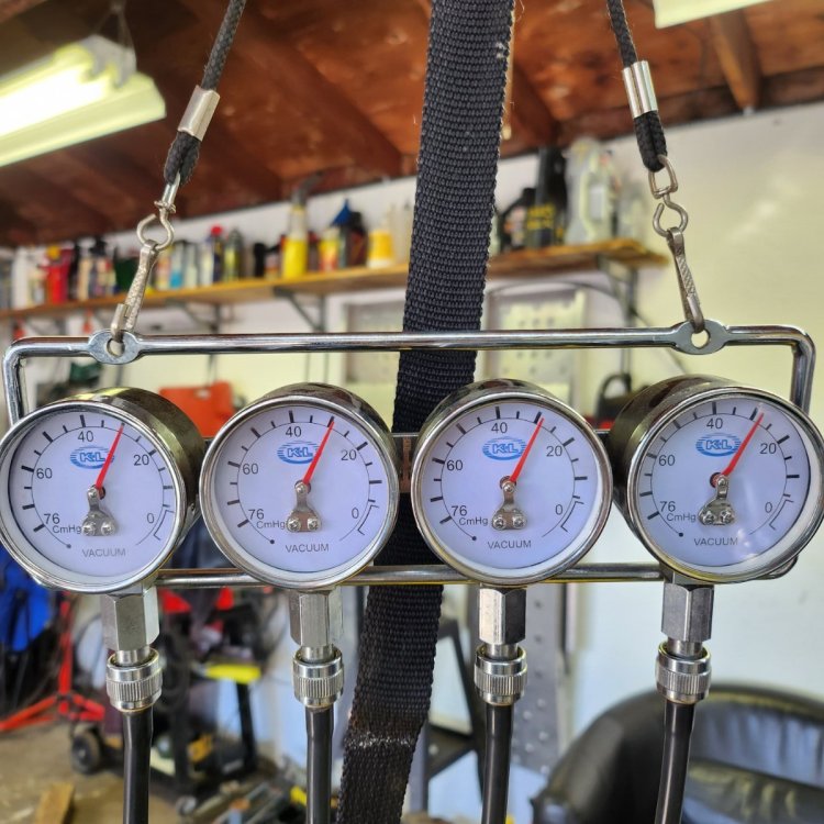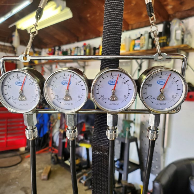 Jb, Yessir... correct on the dampening action. The small collar right before the hose leading to the carb allows damping of the intake pulse. Played with it a bit, but eventually brought it down to about a needles width of movement and continued tuning from there. Prompting my original question was seeing some vac gauges that have colored areas that indicate good, bad, etc. More particularly, one gauge had an area indicated for late ignition timing. Knowing I have my lucas/aldon with a whopping 12 degrees of advance, turned up to about 22 degrees base for an all in around 34 and wondering how much of an effect it had on my readings.