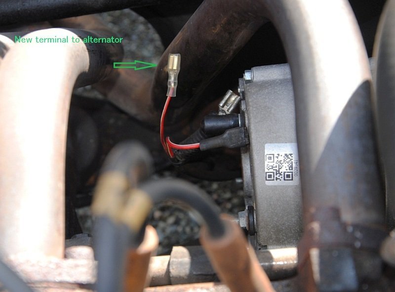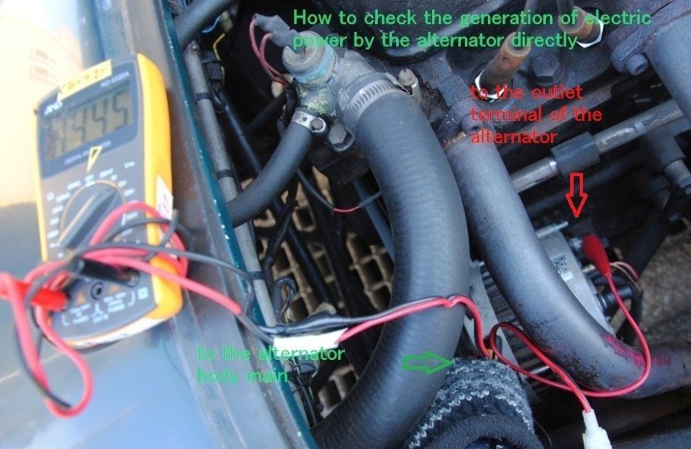 After the engine did not start again on the gas refueIing stop, and returun to Hayama, I visited Elite Motors in Nagasawa, Misaki. After hearing the current illness, meister Sakamoto immediately install the additional second thick cable from the alternator to the battery - Photo-1 New line from the alternator, very thick compared with the existing thin cable, - Photo-2 Distal charging terminal to the battery. He taught me how to check if the alternator is really generating the electric power to the battery (to rule out the possibility that the alternator itself is the primary cause) - Photo-3 The electric tester (multimeter) is set, one test end to the alternator's main body and the other end to the outlet terminal. O.K. 14.45 volts, the alternator is proved to be working. I hope this treatment is effective. I return to Hayama retreat through the east side of Miura Peninsula comfortably.