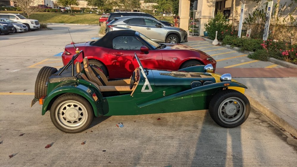 At the risk of adding more smoke than light, I recently went through this in Texas with a 1991 Caterham Crossflow, probably not much different from yours. I had three choices of categories in which to register: Normal, Classic and Antique. Per state regulations, TX antique car tags are assigned to vehicles that are at least 25 years old, are collector’s items and are used for parades, exhibitions and other public events. Since I use my car for all kinds of travel around The Woodlands, that didn't work for me. Like you, I'm ok not willing to outright flaunt the rules. I ended up with Classic but other than a plate which says "Classic" I don't see any difference from normal. In contradiction to my earlier statement about flaunting rules, I do run without a front license plate. In nine months, no issues despite multiple times when I have passed through a speed trap. I'm thinking the biggest risk there is if I get stopped for something else, the nice officer will pile on the front plate infraction. Have you found a mechanic who is familiar with Sevens? Some jobs are beyond my skill. Some jobs have no room for the errors which come with my wrenching.
