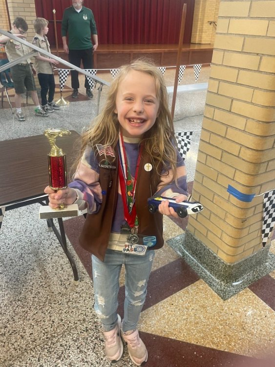 Closing the loop on the Pinewood Derby... The troop had the fastest 14 cars of the day (~150 cars total) and won 1st and 2nd place overall (only 2 cars per troop could advance to finals). But the slowest car in her troop was faster than the other 18 cars in the finals. Perhaps we over did it a bit. Not sure we'll be invited back again next year.