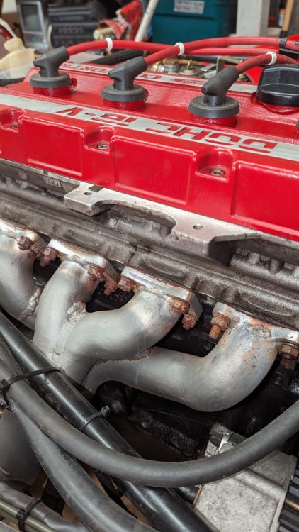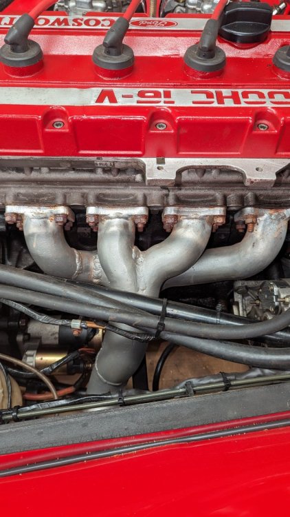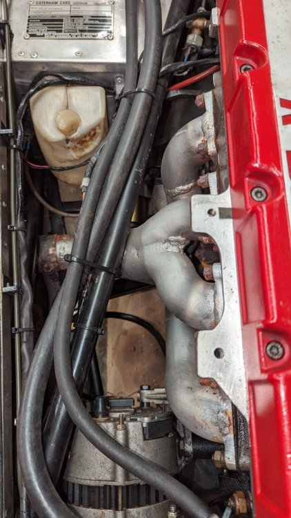 I would like to replace these short tube headers with a longer unit. I am pretty sure it's having a negative affect. The car is stock Caterham LHD long body kit car originally sold to a Dutch builder. the Cosworth takes up a lot of space. The photos aren't great but there's a frame piece, a motor mount strut, an alternator and a starter to work around. Question for the Forum is 'Does anyone know of headers that have been produced for this application?' What is the best way to go? Any options other than custom?