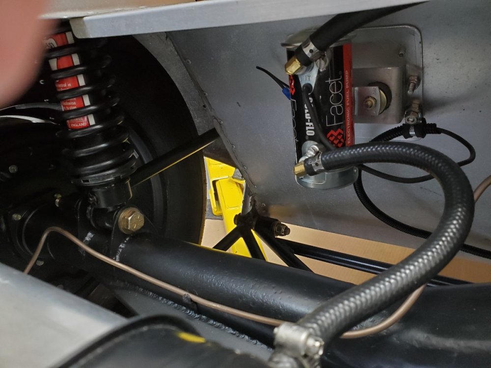 6. Here is my Facet fuel pump installed on rubber isolators on bracket I made. This feeds regulator / filter set up on the other side w/ fabbed bracket in second pic. Never hear or feel it with car running. Remember to put ground wire on pump when using rubber isolators...
