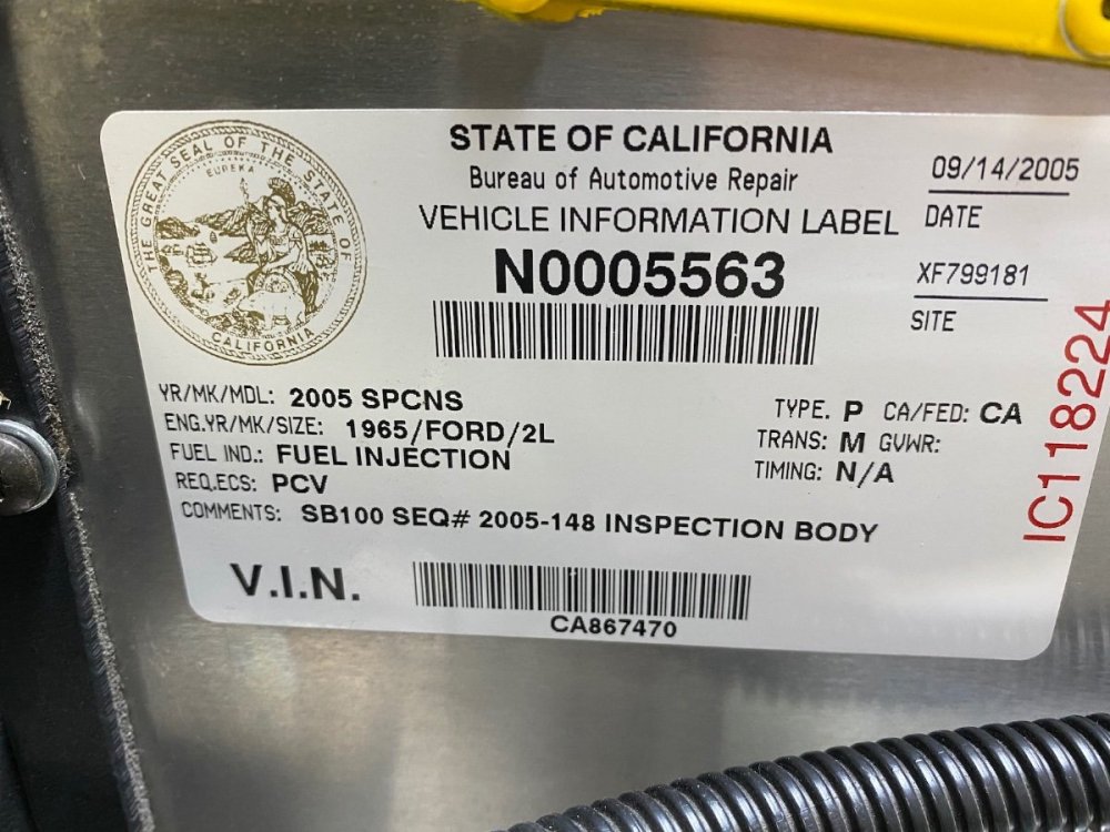 I'm the 2nd owner and bought it in California (see photo of SB100 label) where it was listed as a Specially Constructed Vehicle (SPCNS) and smog exempt. The SB100 label is still on the car. After moving to AZ, it's registered in AZ as a SPCNS and also no emissions test required.