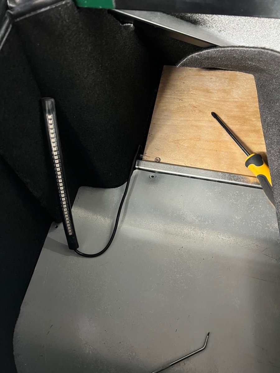 Yeah. I didn’t want to remove my floor either. I was able to take one screw out and raise it just enough to get the light thru. I didn’t want to rip the carpet out as well so I just put a strip of double sided Velcro (prickly side sticks to the carpet and the soft side faces out. It is hardly noticeable. Can’t seem to find a picture of this. I did have a strange led failure. 2 of the middle lights died a few weeks apart on each strip. Cater led sent me another one and I sourced one from Amazon for like $9. Must have been a band batch. The current ones have worked well