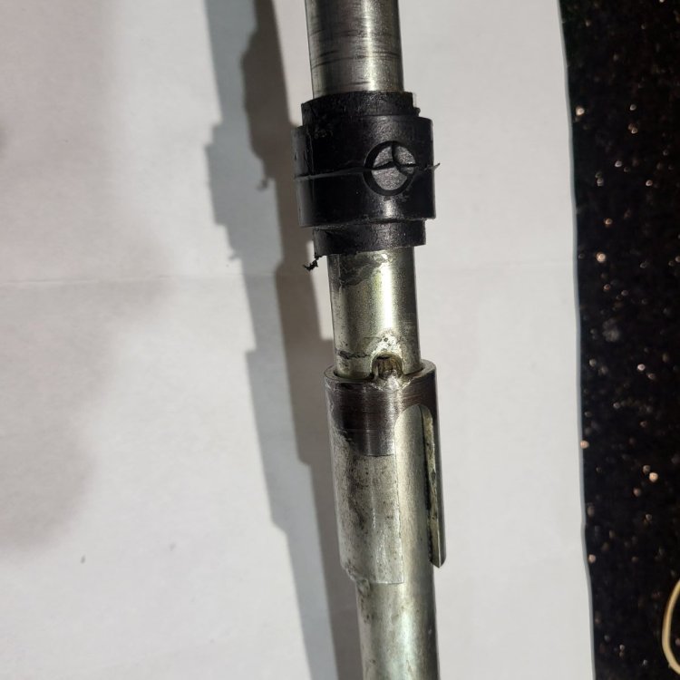 Hi Pethier, Mine would move in and out a little, it felt and sounded like it was hitting a very solid metal stop somewhere inside. I even removed the steering lock at one stage because i thought that was what it was hitting. The shaft has a much larger diameter section where the steering lock is located, it will only come out toward the driver. This is my old shaft, you can see the added larger diameter sleeve that is for the steering lock and the rubber bush with the ears. I really did inject WD40 in around the bush it helped a lot.
