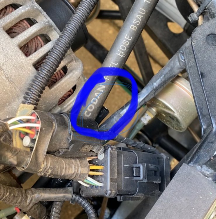 It’s running up front just under the alternator currently open air and yesterday dumped quite a bit of fuel just pushing the car out of the garage. -