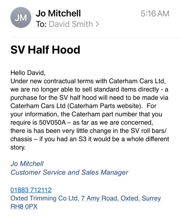 Looking for a half hood for my SV in all black. Before I order new I thought i would check here. I have the regular roll bar. Any help is appreciated.