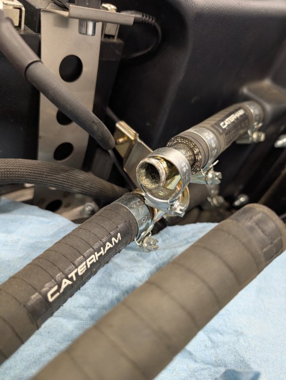 Just adding my $0.02 re:coolant here, in lieu of a new thread. I put a 420R together a couple years ago, and decided to cheap out on coolant, expecting to swap it in a year, and the cheapest I found was green. I missed the fine print about coolant types, and later noticed that the convenient color coding does not obviate the need to read the fine print -- i.e. "blue" isn't silicate-free glycol in all cases (i.e. US/UK/EU/JAPAC coolant color standards are not necessarily the same). Anyway, long story short, I put in conventional/legacy green stuff, and just got through fixing that problem with a series of flushes (to @MV8 point that you can't just drain and refill, unless you have a gantry crane that can hang the car upside down or something). Flushing ritual went a bit like this: drained what i could (with rear of the car elevated), added prestone clean/flush w/distilled water and ran for 10min, then went through a series of 5 drains and refills with just distilled water, elevating the rear at drain time, and the front a fill time -- basically, until what comes out of the car is mostly clear. Attached is a pic of the build-up in my heater circuit after just 18mo/5kmi, and the sticker on the reservoir that very clearly indicates that putting green things in there (esp. mixing) is a no-no, and RTFM is advised. Final fill was the new Ford *Yellow* (P-OAT) concentrate diluted to ~40% plus 5oz of Redline Water Wetter. Would love opinions from the readership here on that fill formula...not thrilled with the idea of spending another day dancing around the car with water bottles, but less thrilled about having my radiator shit itself. Is Ford's yellow/P-OAT the new hotness coolness? What do folks run at the track - non-glycol stuff?...just distilled water and water wetter?...