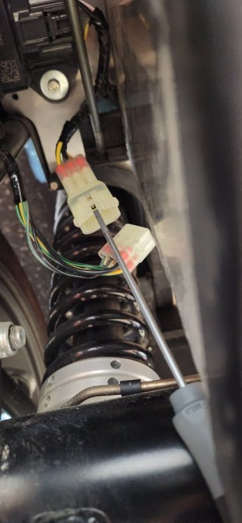 Just to verify, this is with the gauge removed, right? With the gauge installed there should be a voltage of about 3.1-3.2 volts on black/green wire. If it is, then this indicates something wrong. The 470 ohm should persist key on or off. Next step is to disconnect at rear of car and see what you have on that wire with both ends disconnected, should have no continuity to ground at all and no voltage, nothing, nada. Another step in trouble shooting can be to leave the the ohm meter connected, verify the resistance changes key on verses key off. Leave the key on and start pulling fuses until you see a change. Just for grins try this test while disconnecting the 2 wire plug on the back of the alternator. The connector in the back only has one lock, not 3 but it can be a pain getting in there to remove. I will go out to the shop and try and get a picture of where you press to unlock. -