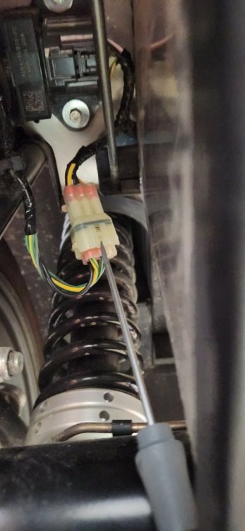 If you are getting 1.M ohms it is definitely not connected to the tank. Try this: Check voltage between Green/black and ground at gauge connector with the gauge disconnected. Try it with key off and on. Voltage should be zero in both cases. If you read voltage let me know what you get. The Green/Black wire goes from the gauge connector through a large connector up under the dash in about the middle. It then goes straight back to the tank sender. We had one where two of the pins were swapped on the connector in the middle of the dash. The mystery unit by the tank is a fuel pump controller and has nothing to do with the gauge. It is straight out of Ford Focus and can be used to control fuel pressure but Caterham does not use this feature and leaves it at a constant pressure. You can also check continuity between Green/Black at the gauge and Green/Black at the connector under the left rear of the car that goes up to the controller. You should have continuity(zero ohms) there. -