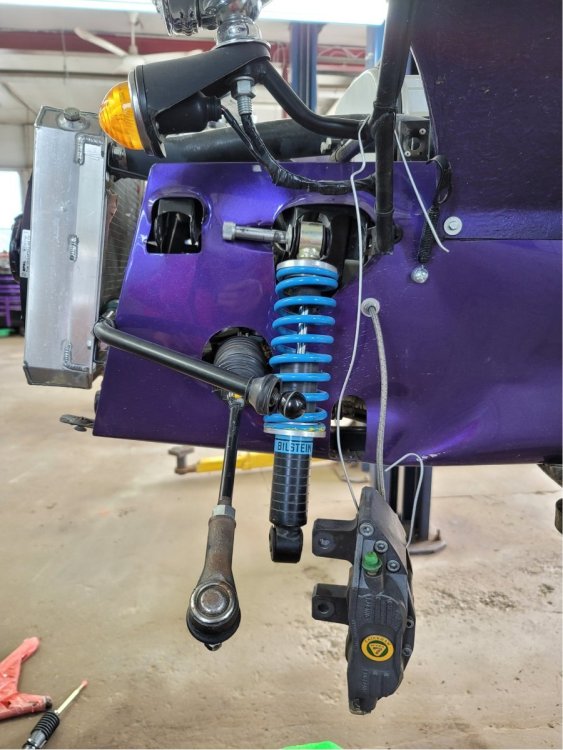 Today’s photo, left suspension removed and pickup points tweaked into position. A arms took the brunt and they tell me the chassis is fine. New suspension will be going on tomorrow just so they can roll it around the shop. It has to be parked in a corner until the “correct” rack arrives. The one they received is a newer beefy looking alloy unit and our car has a much smaller diameter steel unit.