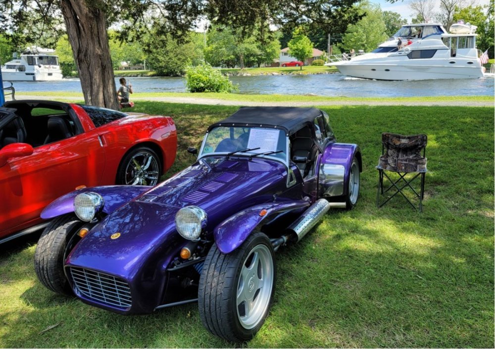Purple Rain is in a state of slumber. I filled the tank with fresh premium grade and a little two stroke oil then drove around for about 20 minutes before parking it at home. The indoor cover is on and I can easily roll the car forward and back several feet so no need to worry about flat spots. Good thing is if we get another sunny spell I can hop in a go for a blat. Once they start salting the roads though it’ll be spring before we hit the open road again. Looking back over the summer we covered only 2668 miles (about 4300 km’s) but those were some epic outings. We attended over a dozen car shows, (took a 2nd in class at one) and attended at least one Cruise Night per week. I did not document the shows and rallies on this site. However, if you follow the UK club site or the Lotus 7 & Caterham Cub Canada Facebook page you would have seen all that. Here is a brief look back of some highlights in photos.