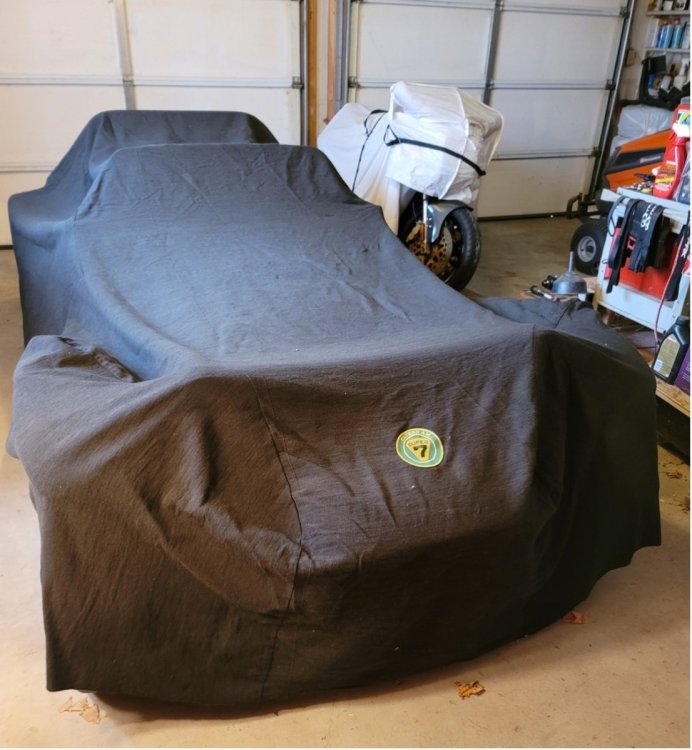 If car covers are swag then mine should “fit” right in. (See what I did there?) According to the build sheet and Caterham invoice my car was delivered with a “Factory Car Cover – Calico (dust) Super Seven”. I assume it would have had a Logo. What I received from the seller with my car is a type of cloth cover, perhaps home made with a Caterham Seven patch sewn onto it. It just drapes over the car as opposed to being stretched over it as the modern ones do. Original, aftermarket or homemade can anyone tell me?