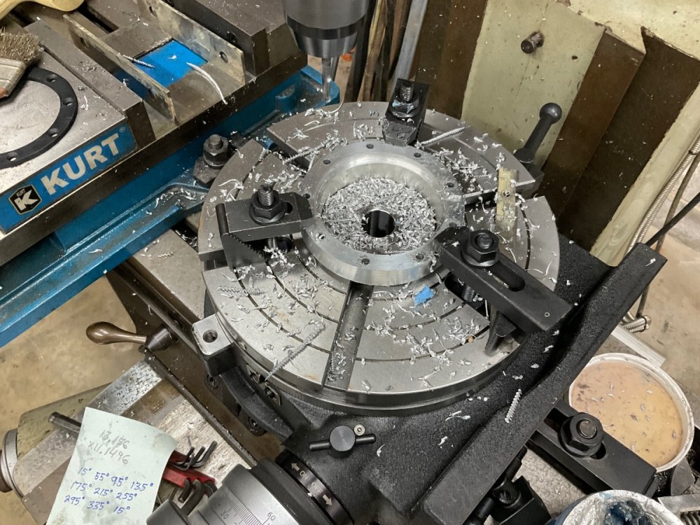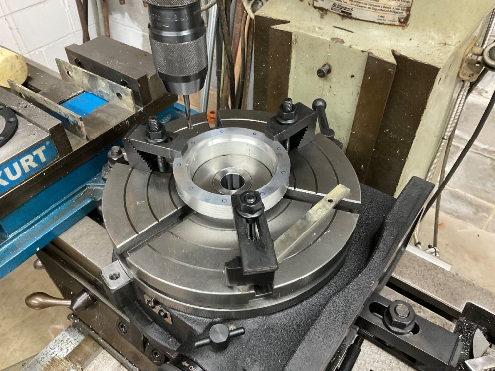 Tonight I finished up th spacer. Here are a few pictures. I don’t have the availabilty of CNC machine tools any more but conventional stuff still gets the job done. -