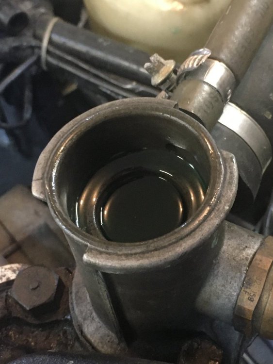 Took off the nose. Pushed the car out of the shop into the garage. Opened the garage door. Placed a couple of fire bottles nearby. Topped up the coolant by taking it out of the overflow bottle with a turkey-baster. I think the coolant cap is missing the outer seal that allows the engine to pull the coolant back from the overflow bottle into the radiator. Started the car and warmed it all the way up. No hot wires. No apparent leaks. No smoke. Just could not make it fail. Drove it around the neighborhood with nose and engine cover off for a while. Winter is setting in, so I may not get it on the road again. On my winter list is sourcing a proper cap and the radiator hose from the thermostat to the radiator. It is not leaking, but there is some checking on the thermostat end. No point in waiting for it to fail.