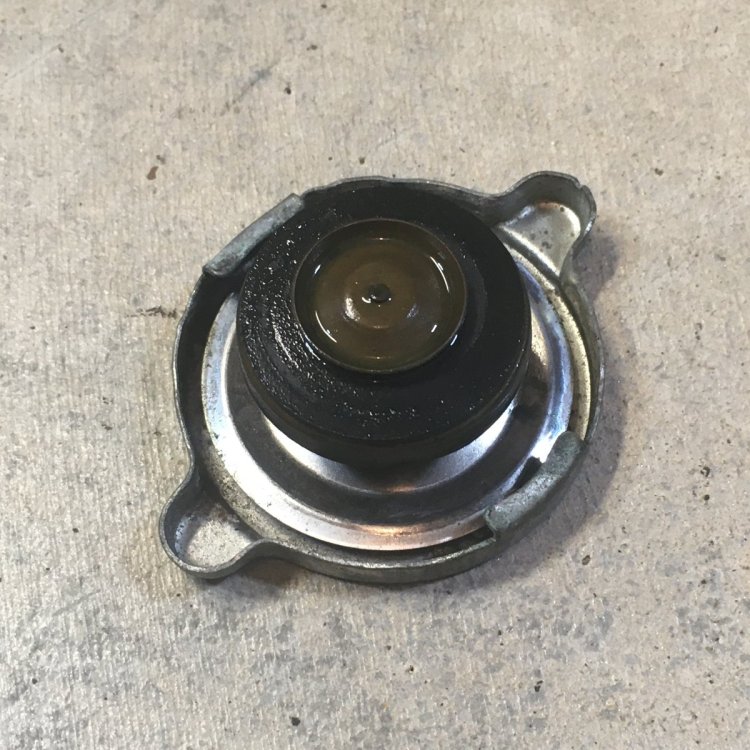 I am trying to find the correct radiator cap for my 1700 Super Sprint. The radiator cap goes on the top of the thermostat housing. It is the highest part of the system. The overflow expansion reservoir is plastic and open to the atmosphere. It is lower than the radiator cap. In theory, coolant should suck back into the system when the car is parked and cools. This is not happening because the cap lacks the larger second seal. The second way that this is the wrong cap is that the pressure seal is too short to seal. When you put a cap on, you should feel the spring pushing back. I don't. Does anyone know what cap to ask for? If anyone has a functioning 1700 Super Sprint with an unpressurized coolant tank, please tell me numbers and brand names on the radiator cap. -