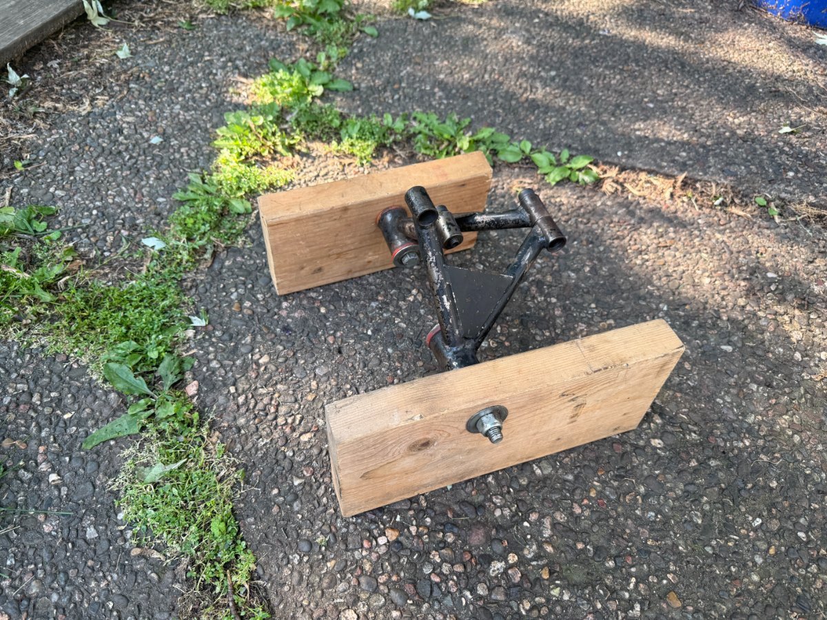 When I transported my ex-Birkin Zetec stuff from Steve's place to the shop in Isanti we kept the engine upright. Steve and I stabilized it with its Birkin engine mounts and couple of 2x6s, then put four ratchet straps on it.