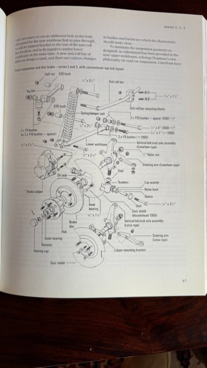 Thanks for the link!! The inserts of my trunnions are completely removable, but have a setscrew which arrests the inner metal sleeve. I have the L/H front suspension apart and will attach pictures as soon as I am back at my shop. The picture out of Tony Weale's Seven book perfectly resembles my front suspension