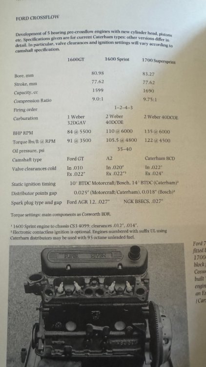 Dear USA7s members, I recently installed a 123 Ignition on my Kent Xflow. The installation was very straight forward. My engine is a stock 1700 Super Sprint. Pete Christensen (Total Performance Engines) flowed the head but other than that the engine is as it got delivered in 1999 (6500 miles). Compressions are strong and it's running smoothly. Kent 234 cam. My DCOE 40s are brand new and set up properly. My starting point was the Caterham data for the engine, which calls for 10* BTDC advance below 1000RPM. I degreed the crank and am sure about TDC, which is about 2 degrees off from the case mark. I am NOT using Vacuum. I programmed my ignition for a linear advance curve which rises from 10* BTDC to 37* BTDC at 3000RPM until it reaches the REV limiter at 6000RPM. What threw me off a little is, that there is note 2 in Tony Weale's book about Caterham electronic ignition timing at 14 BTDC. I am interested in any kind of ignition data you guys might have in your archives for the 1700 Super Sprint. Also, what are other 123 Ignition users programing into their units and what is their reasoning behind it. Cheers