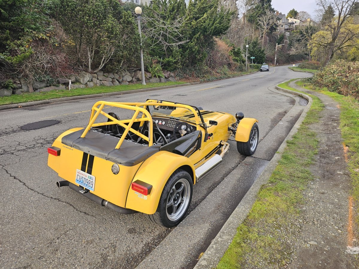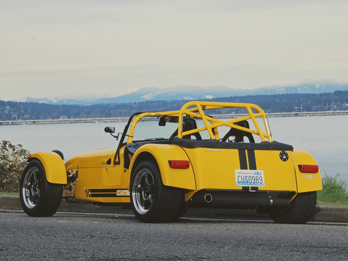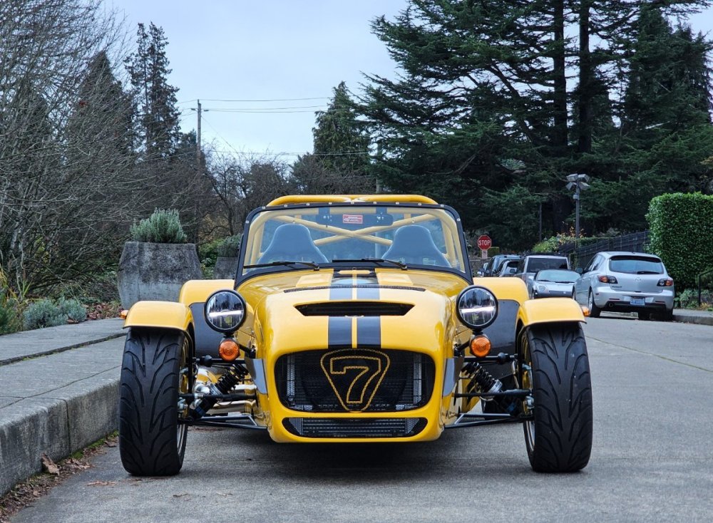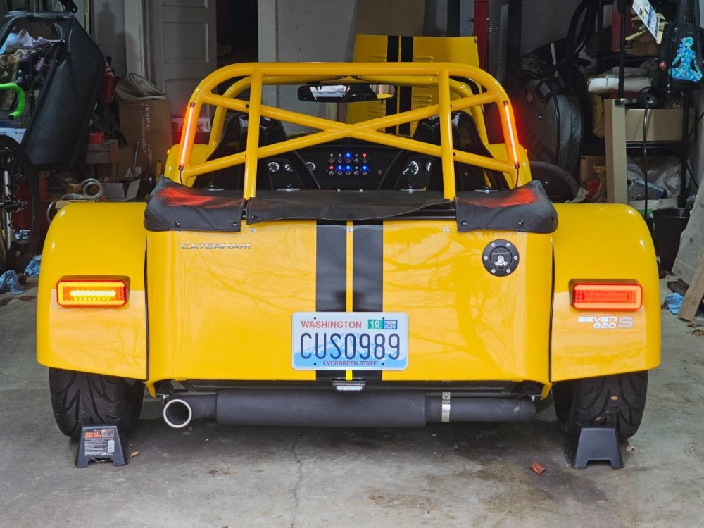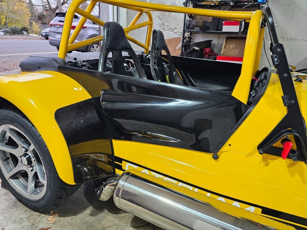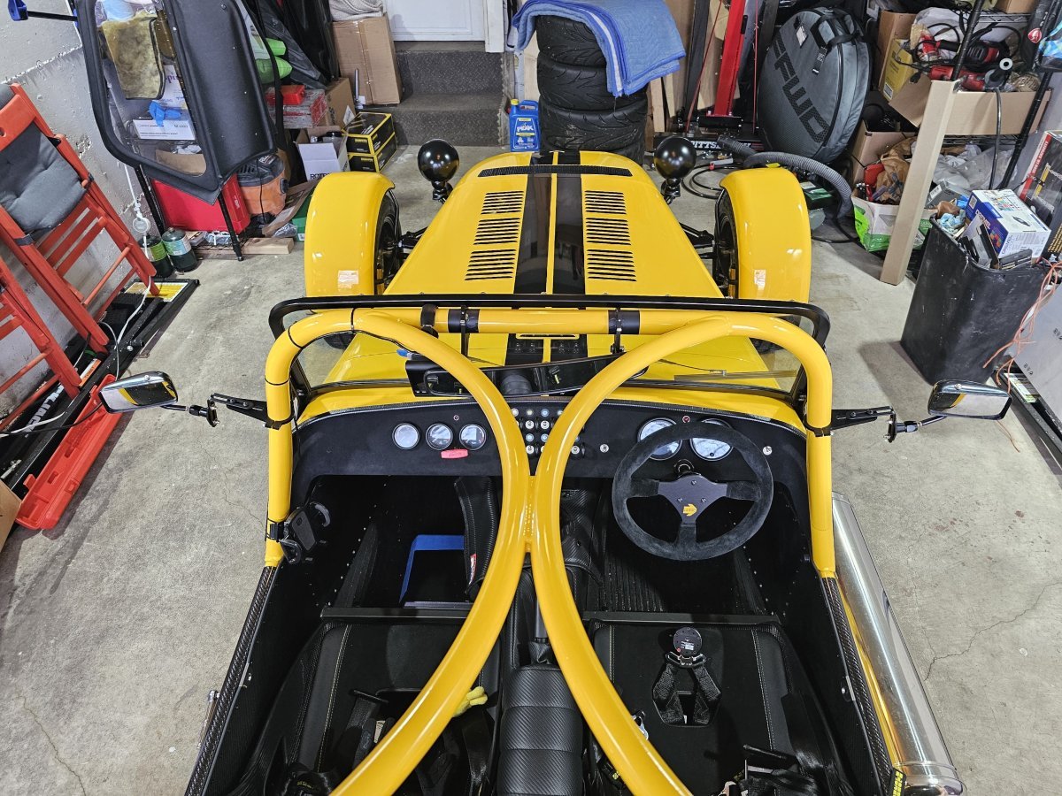 1. Car is now PPF'd on the front cone and hood and sides (thanks Seattle Clear Bra!). Since then, it has been raining, and raining, and more raining, but finally found a day to do a little low speed drive around Lake Washington and sit behind slow drivers. The amount of public support for this car is hilarious. I had more than 10 people come talk to me about it. A car with three little kids U-turned and they all came running out staring haha. The mild dampness showed the supreme capability of these wider tires. Tons of traction. I also tried out the roll bar Spa mirror mounts I Macgyvered together with the extra DPR fixings they graciously sent me when I ordered their door brackets. The distance they are away from the car on the normal doors with the DPR mounts I find it very hard to back up in a straight line into a parking spot, and hard to judge rear fender distance to things next to me. In normal cars, the mirrors stick out to the same width as the car or further, and so you get great perspective for backing up. Not so in the 7. So, for the roll bar mount contraptions I made up, I flipped around the L bracket to get more distance. Much easier now! To minimize time spent converting between rain-mode full doors with DPR mounts and sunny day half-doors with cage mounts, I ordered a second set of Spa mirrors, the GT / Le Mans style this time which are a little taller by about 3/4 inch and wider by about 1-1/2 I believe. I also have a set of coilovers being custom designed for the car by MCS. To-do is measure the motion ratios and then remove the bilsteins to find the un-sprung weights.